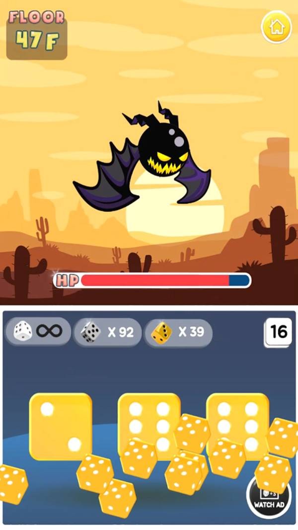 游戲中玩家挑戰(zhàn)挑戰(zhàn)關(guān)卡的時(shí)候,會(huì)隨機(jī)的出現(xiàn)各種不同的怪物,利用骰子消滅怪物。游戲有著多種不同的骰子,玩家在對(duì)戰(zhàn)時(shí)使用稀有骰子,可以一次投擲出多枚骰子,獲得更加強(qiáng)大的攻擊力。