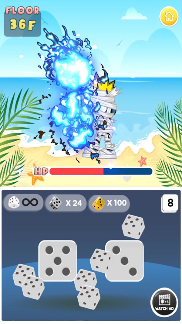 游戲中玩家挑戰(zhàn)挑戰(zhàn)關(guān)卡的時(shí)候,會(huì)隨機(jī)的出現(xiàn)各種不同的怪物,利用骰子消滅怪物。游戲有著多種不同的骰子,玩家在對(duì)戰(zhàn)時(shí)使用稀有骰子,可以一次投擲出多枚骰子,獲得更加強(qiáng)大的攻擊力。