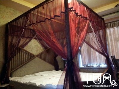 中式木床復(fù)古床幔蚊系帶式簾頭中式蚊帳四柱床裝飾紗幔……